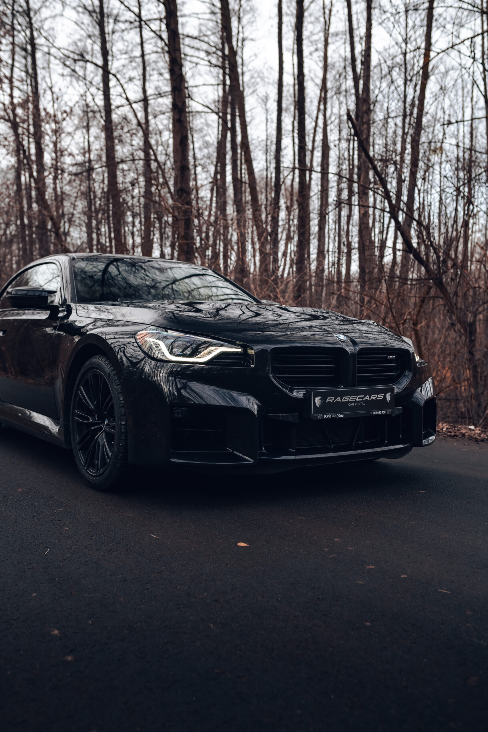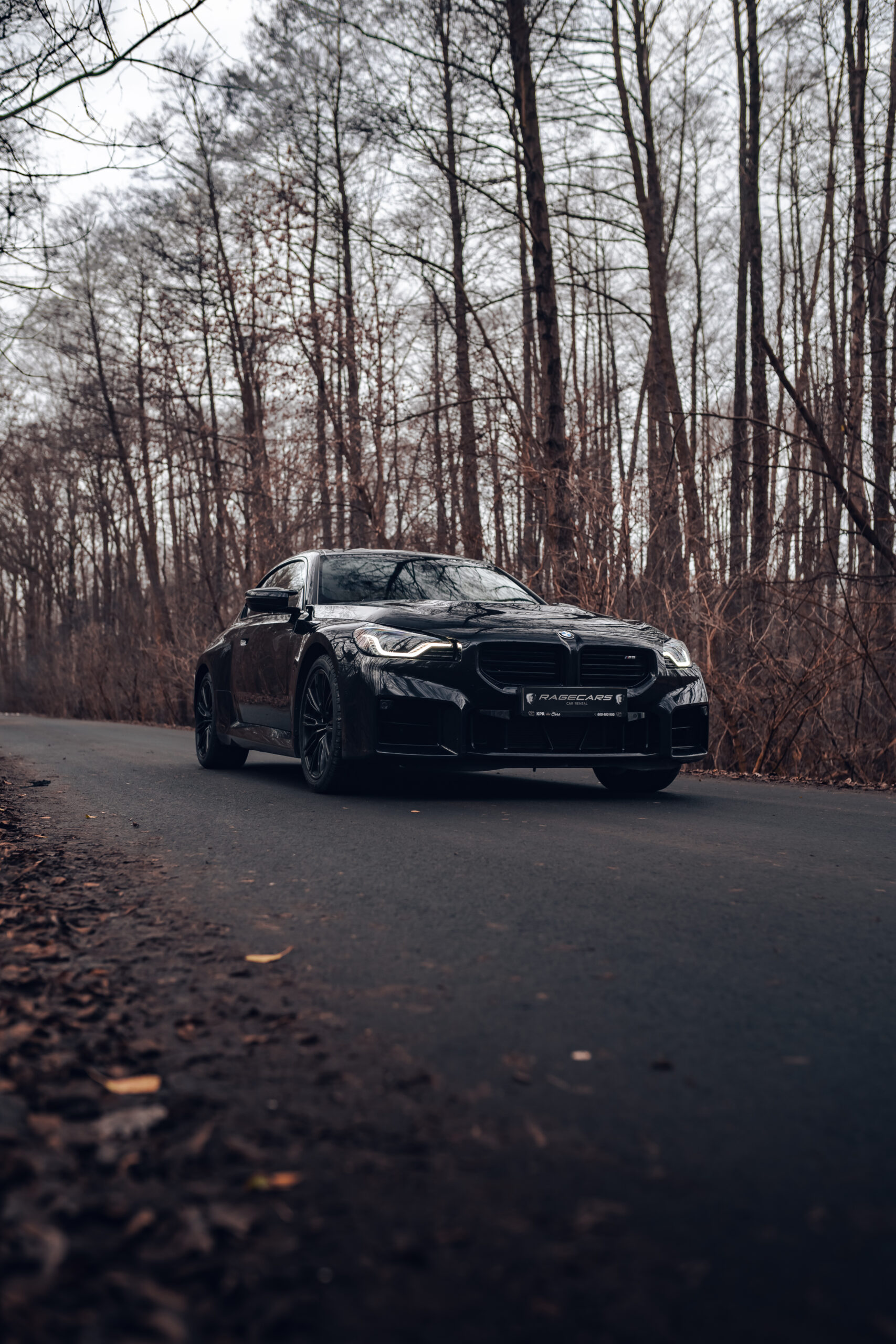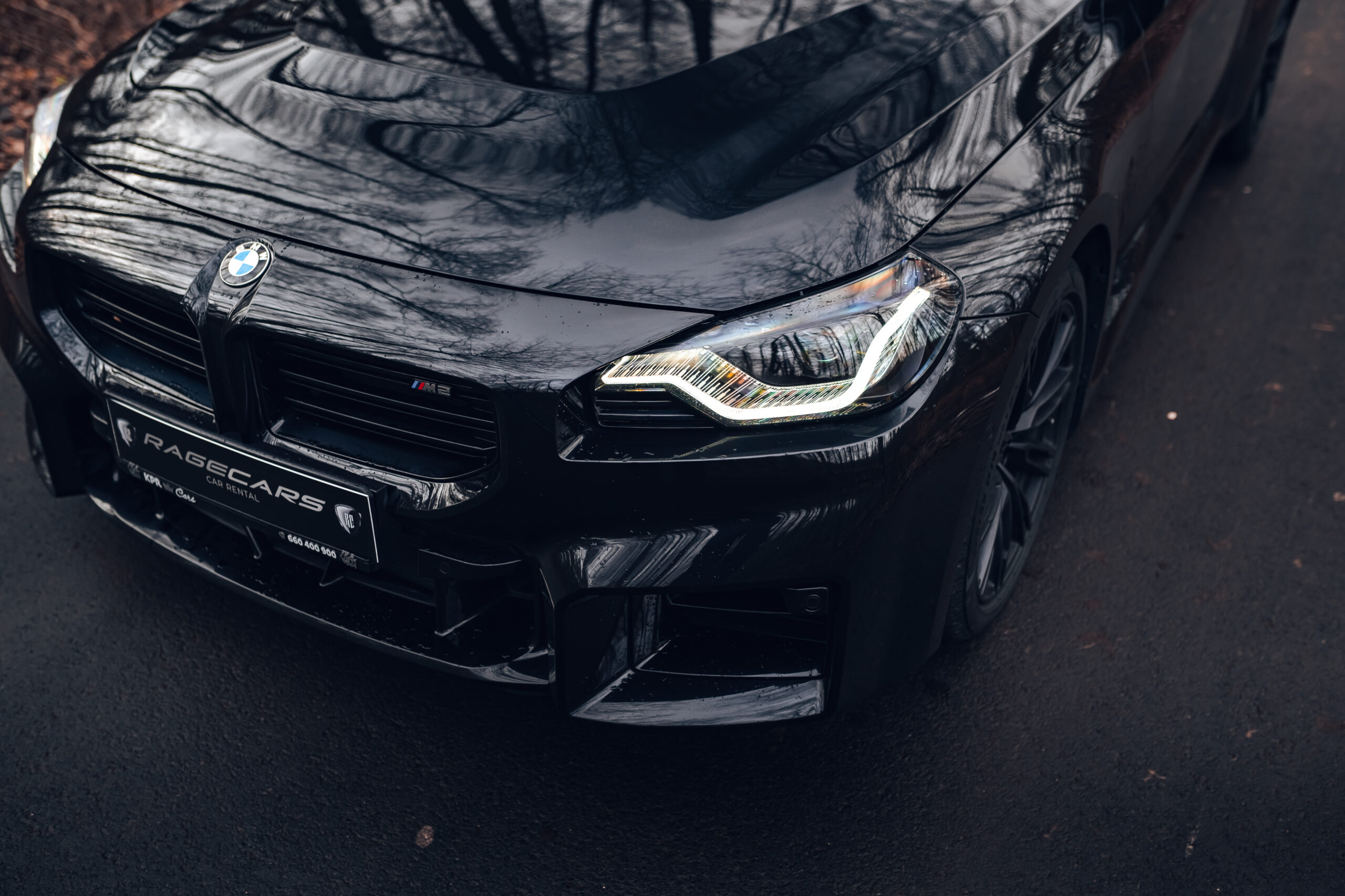 BMW M2 to kompaktowy pocisk stworzony przez ///M – muskularna sylwetka, szeroki rozstaw kół i agresywne proporcje podkreślają jego sportowy charakter. Auto prezentuje wyraziste poszerzenia nadkoli, masywne wloty powietrza i charakterystyczny grill o kanciastym, nowoczesnym kształcie.