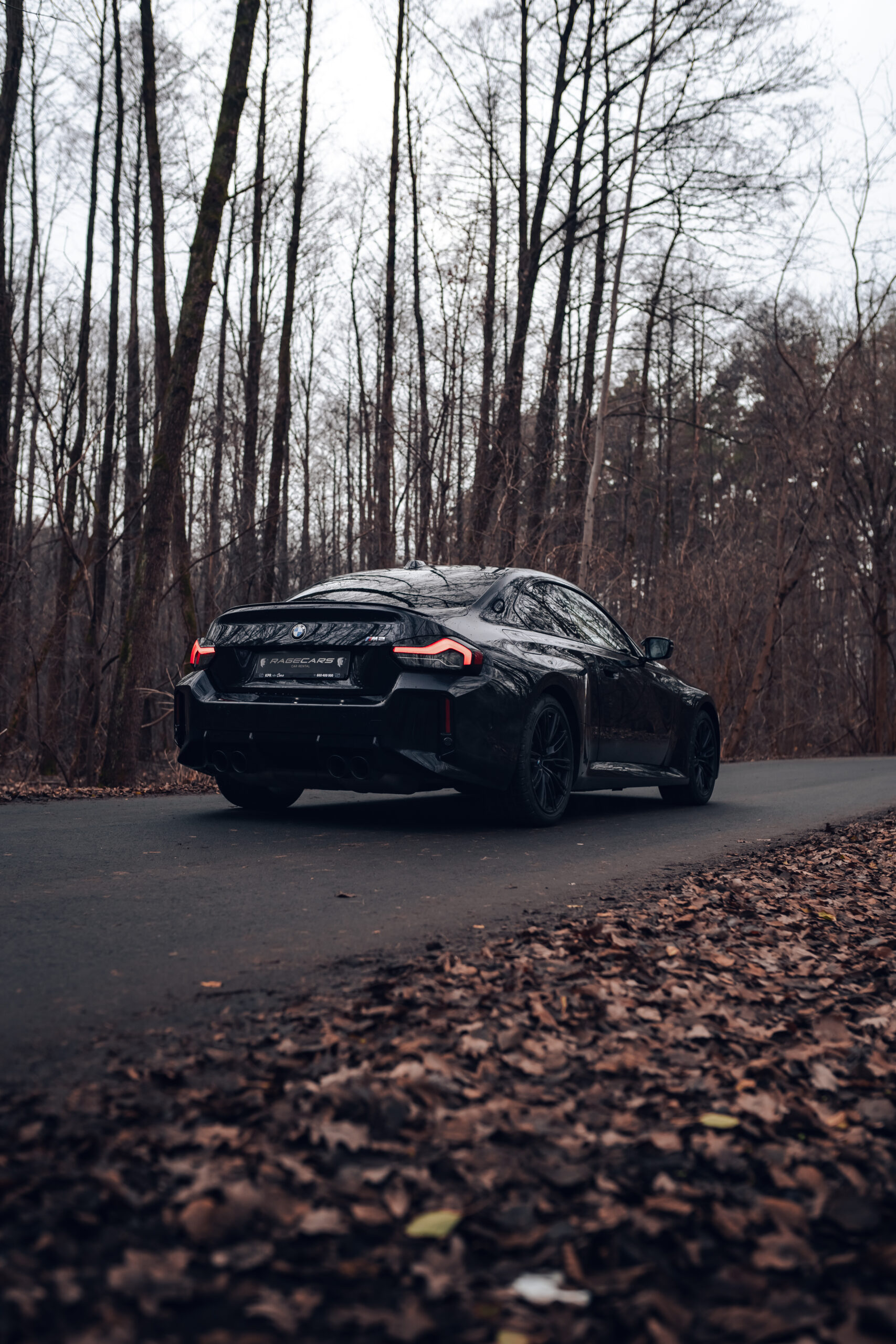 Tył wyróżnia się potężnym dyfuzorem i podwójnymi, sportowymi końcówkami układu wydechowego M. Krótki rozstaw osi, szeroka postura i aerodynamiczne linie nadają M2 niepowtarzalny, bojowy wygląd. To samochód, którego nie da się pomylić z niczym innym – czysta esencja sportowego DNA BMW.