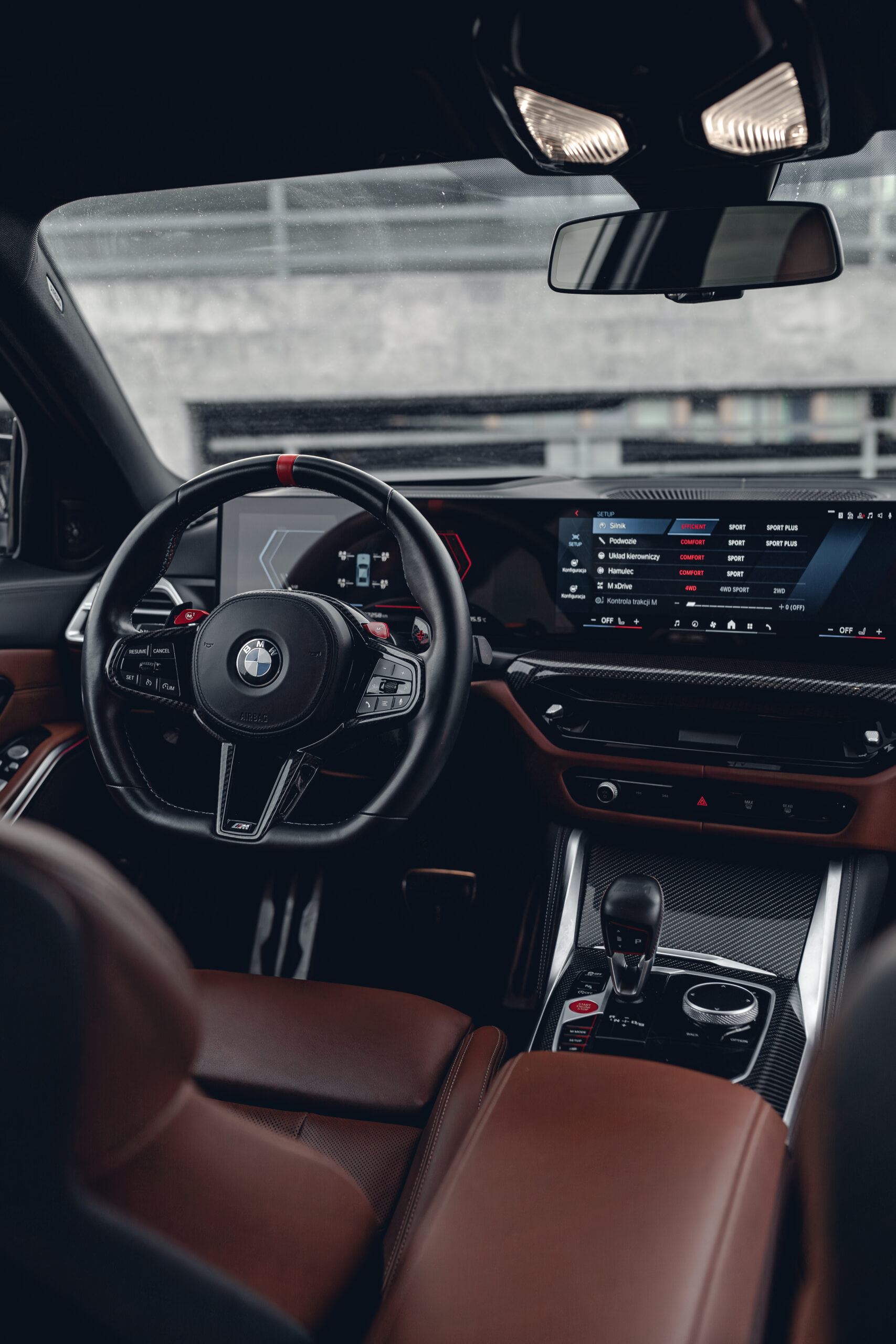 Kabina BMW M3 2025 łączy sportowy charakter z luksusowym wykończeniem.