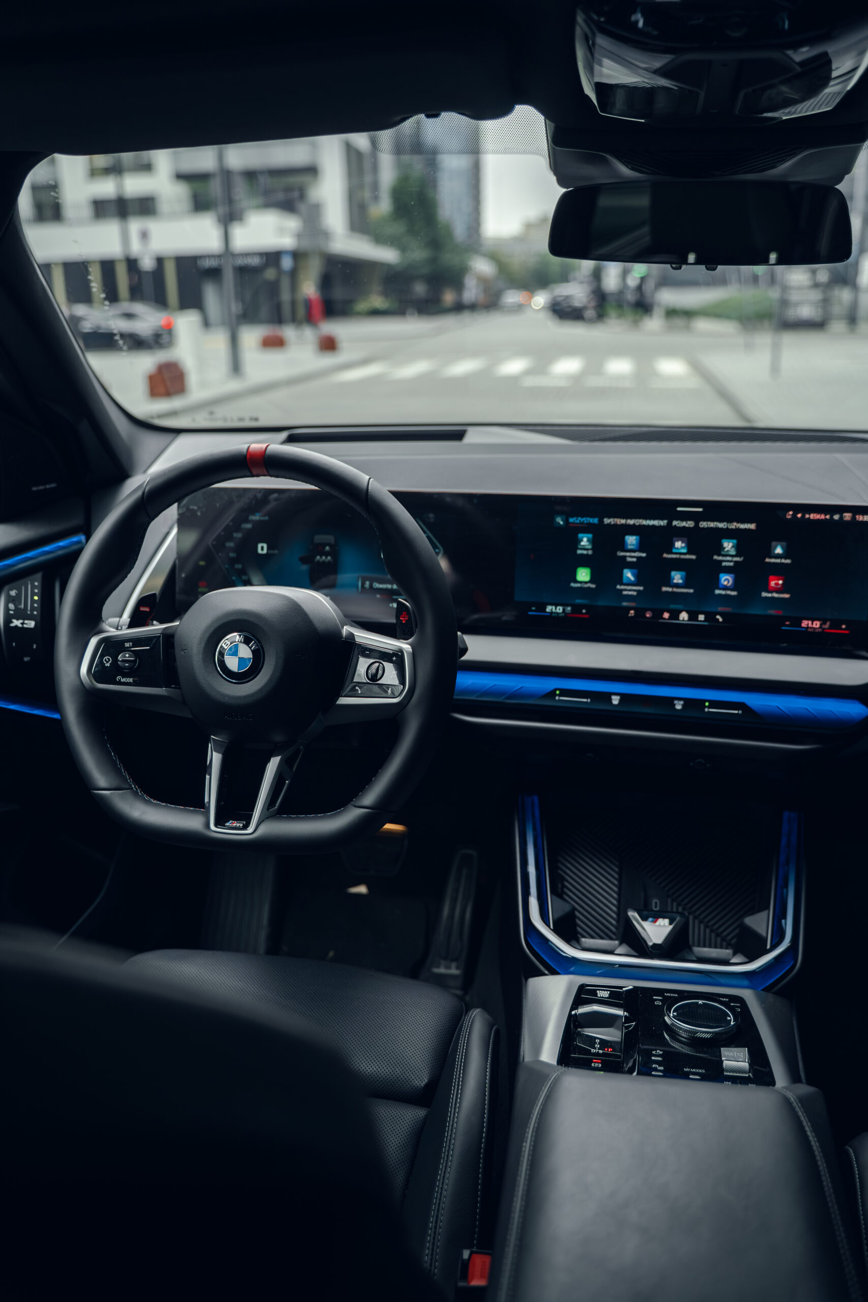 Lubisz sportową jazdę? Oświetlenie ambientowe stworzy do tego idealną atmosferę. W trybie My Mode SPORT świeci w kolorze czerwonym i niebieskim. A może wolisz coś bardziej relaksującego? Tryb My Mode RELAX oświetla wnętrze uspokajającym światłem w kolorze kości słoniowej z zielenią. Oświetlenie ambientowe oświetla wiele obszarów i panel interakcji BMW. Dynamicznie i w maksymalnie 15 kolorach.