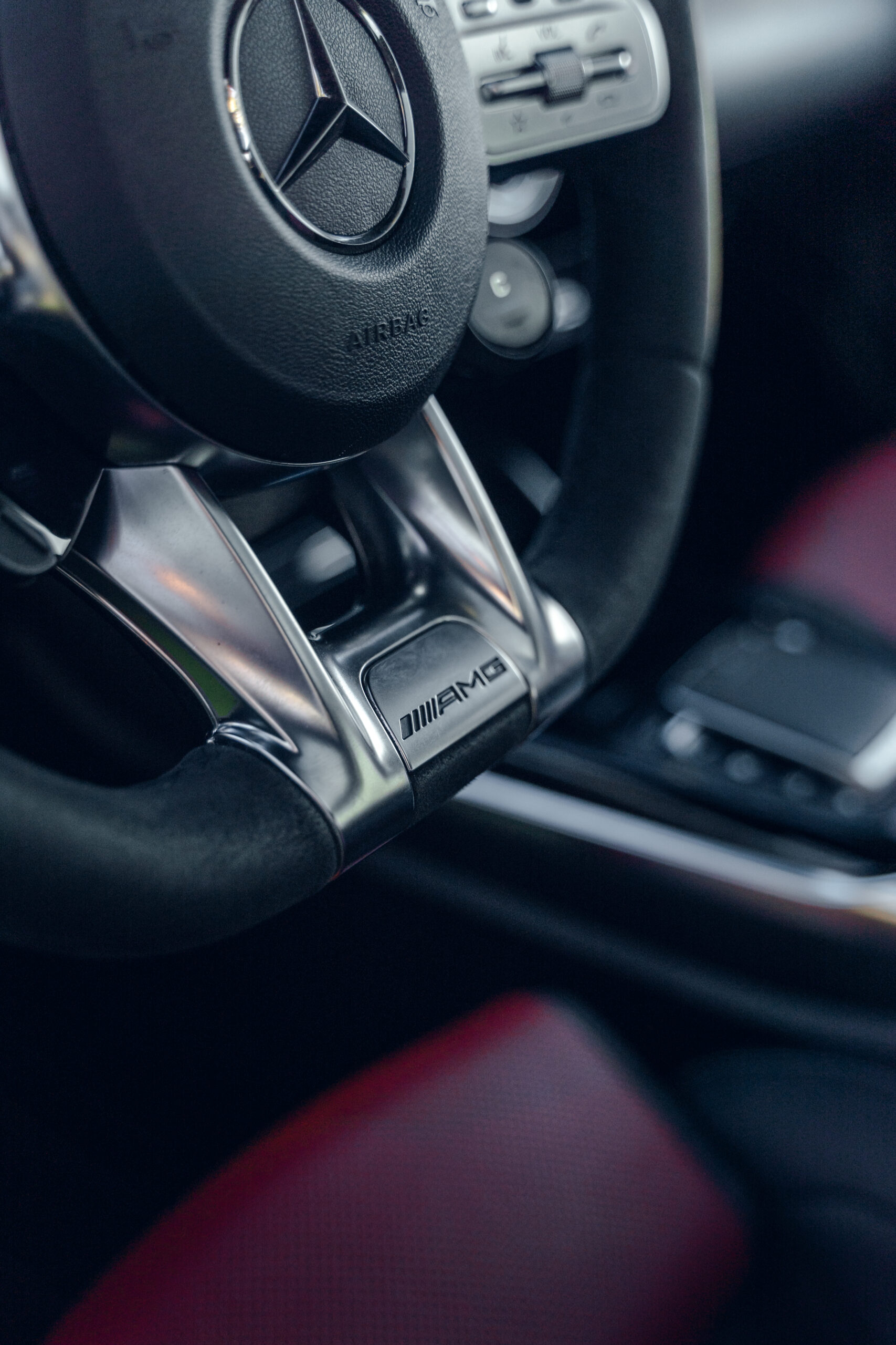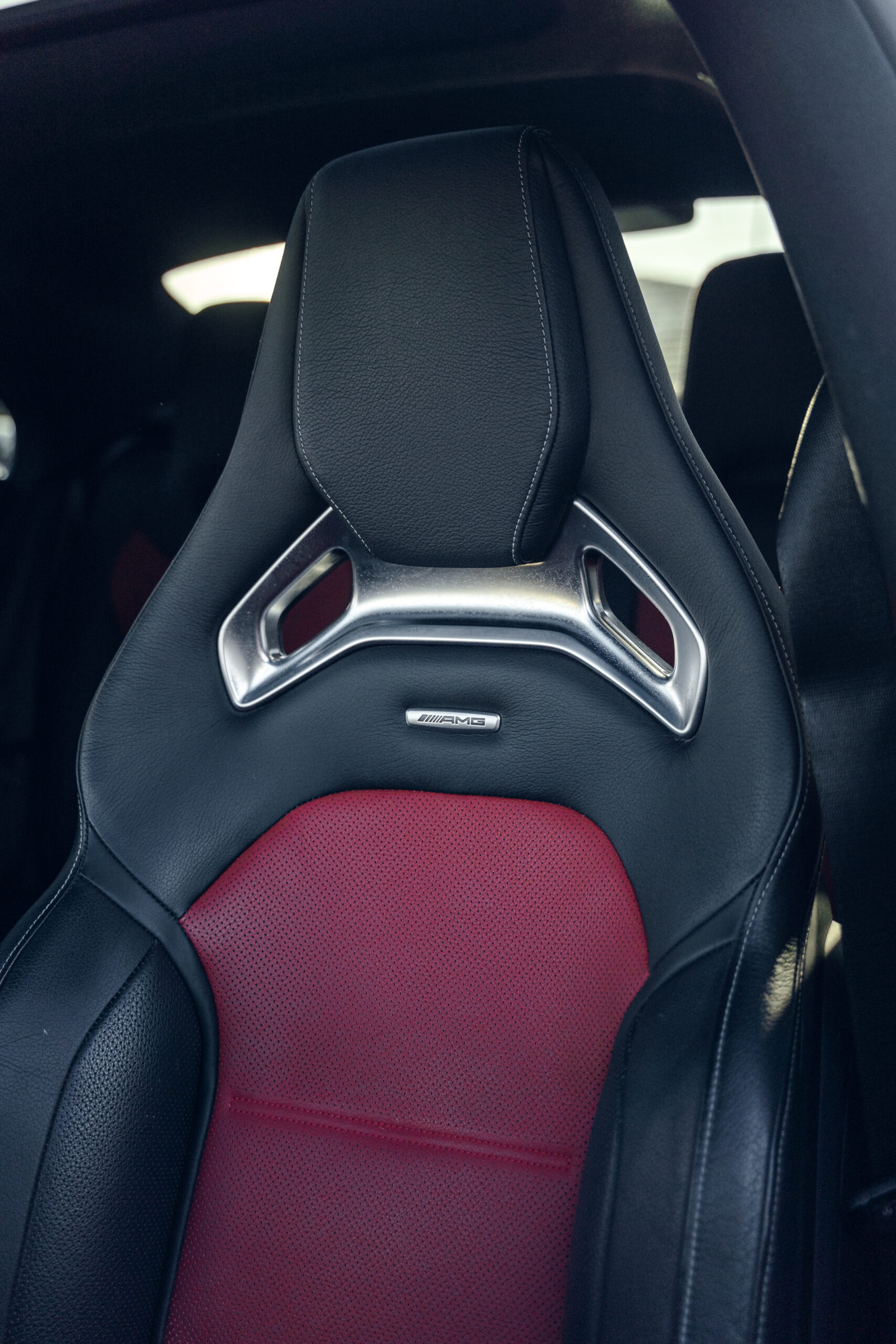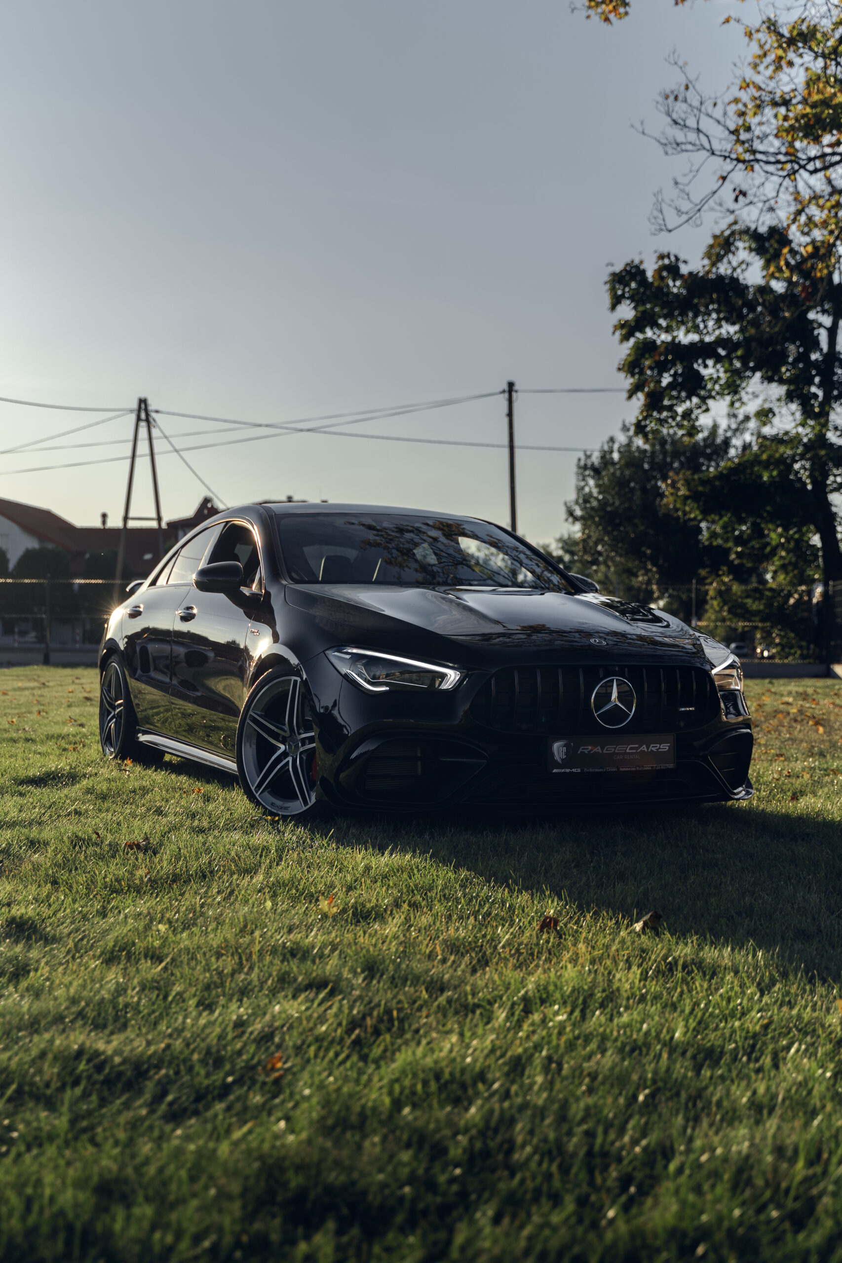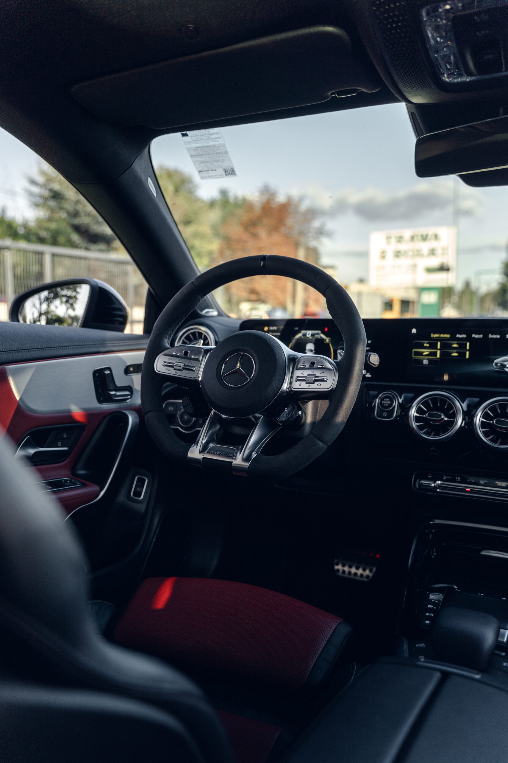Wnętrze Mercedes CLA 45s AMG to doskonałe połączenie sportowego ducha i luksusu, które od razu wciąga kierowcę i pasażerów w świat wysokich osiągów. W centrum uwagi znajdują się wyprofilowane sportowe fotele AMG, które zapewniają doskonałe podparcie boczne podczas dynamicznej jazdy. Wykonane z najwyższej jakości materiałów, takich jak skóra Nappa, mikrofibra DINAMICA czy wstawki z włókna węglowego, fotele są nie tylko wygodne, ale również niezwykle stylowe.
