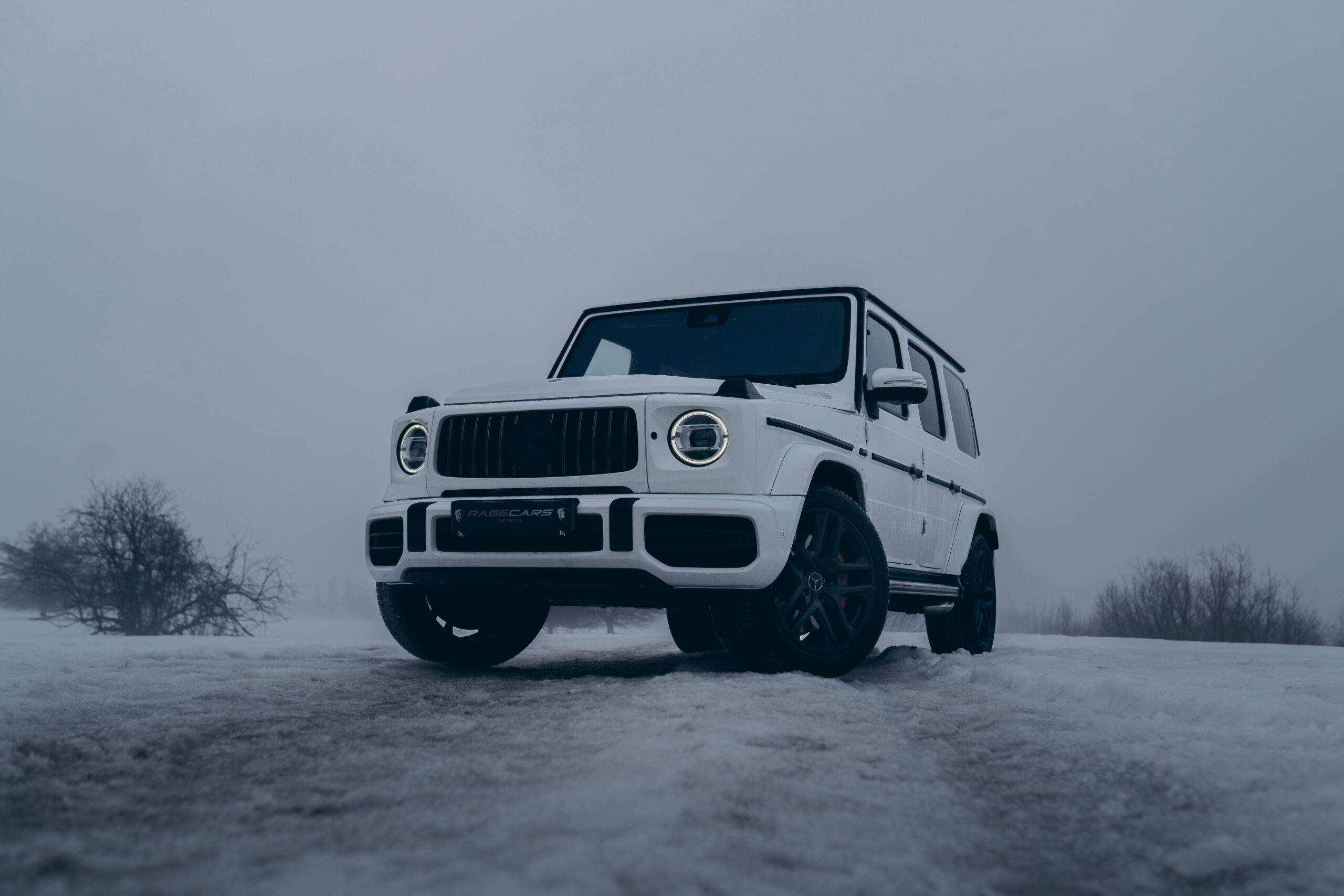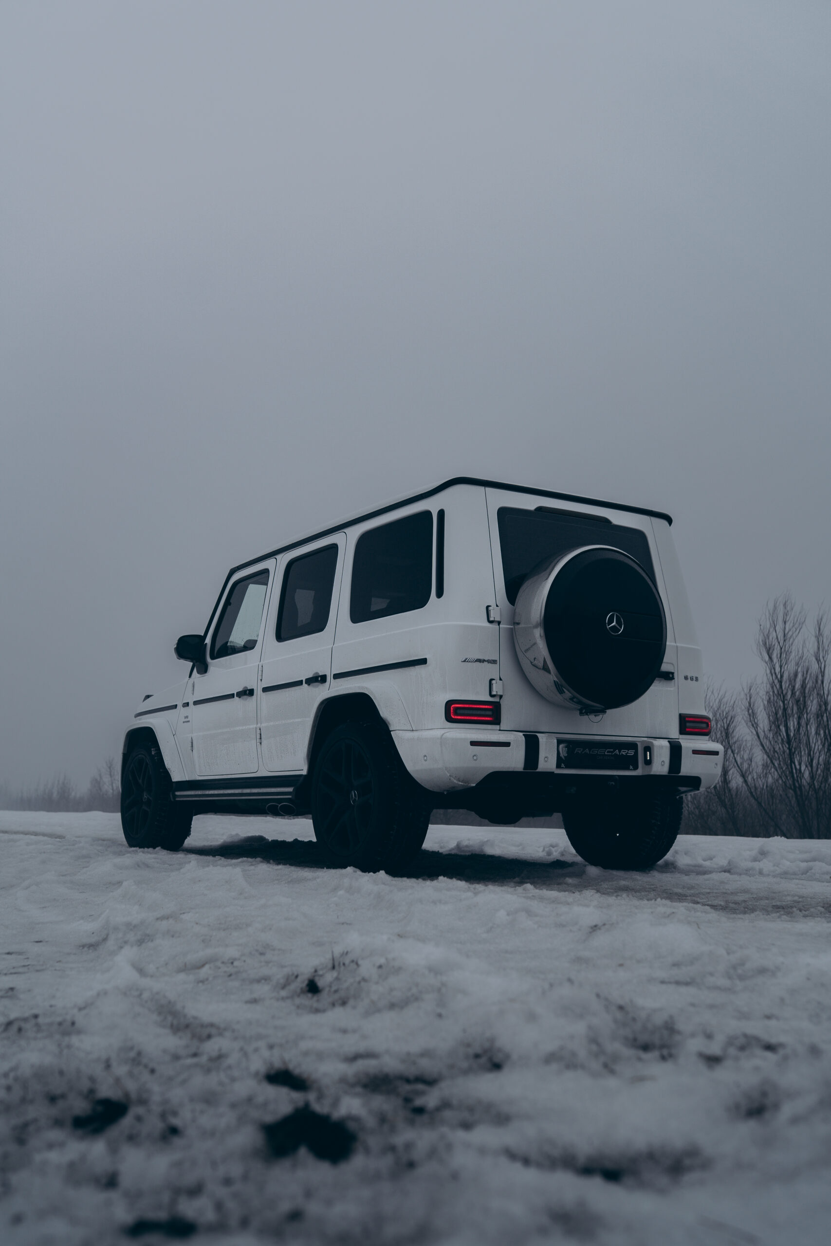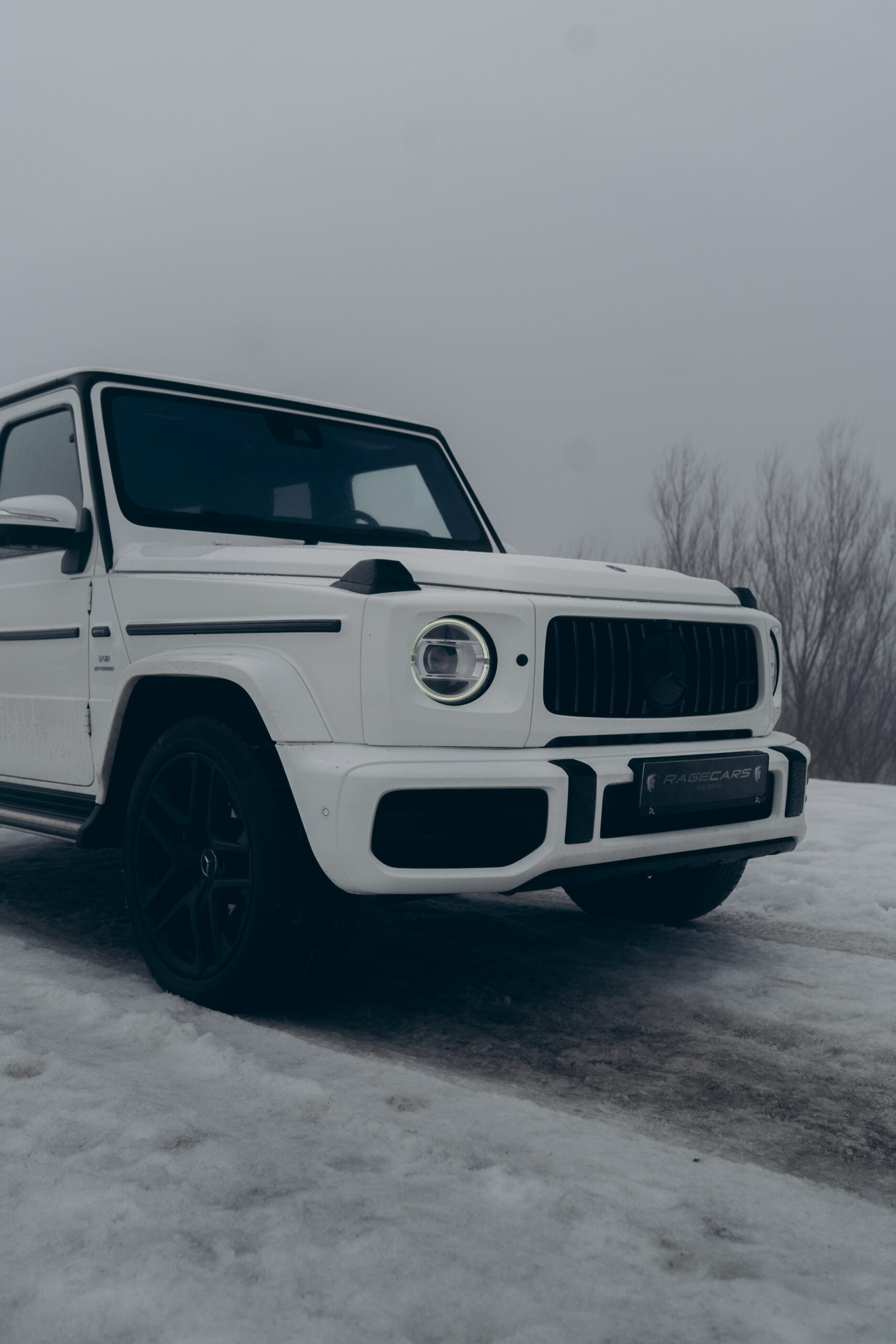 Biały Mercedes-AMG G 63 to połączenie klasycznej, surowej sylwetki terenowej z luksusowym, sportowym charakterem AMG. Lakier w kolorze białym podkreśla kanciaste linie nadwozia oraz masywną, dominującą bryłę pojazdu.