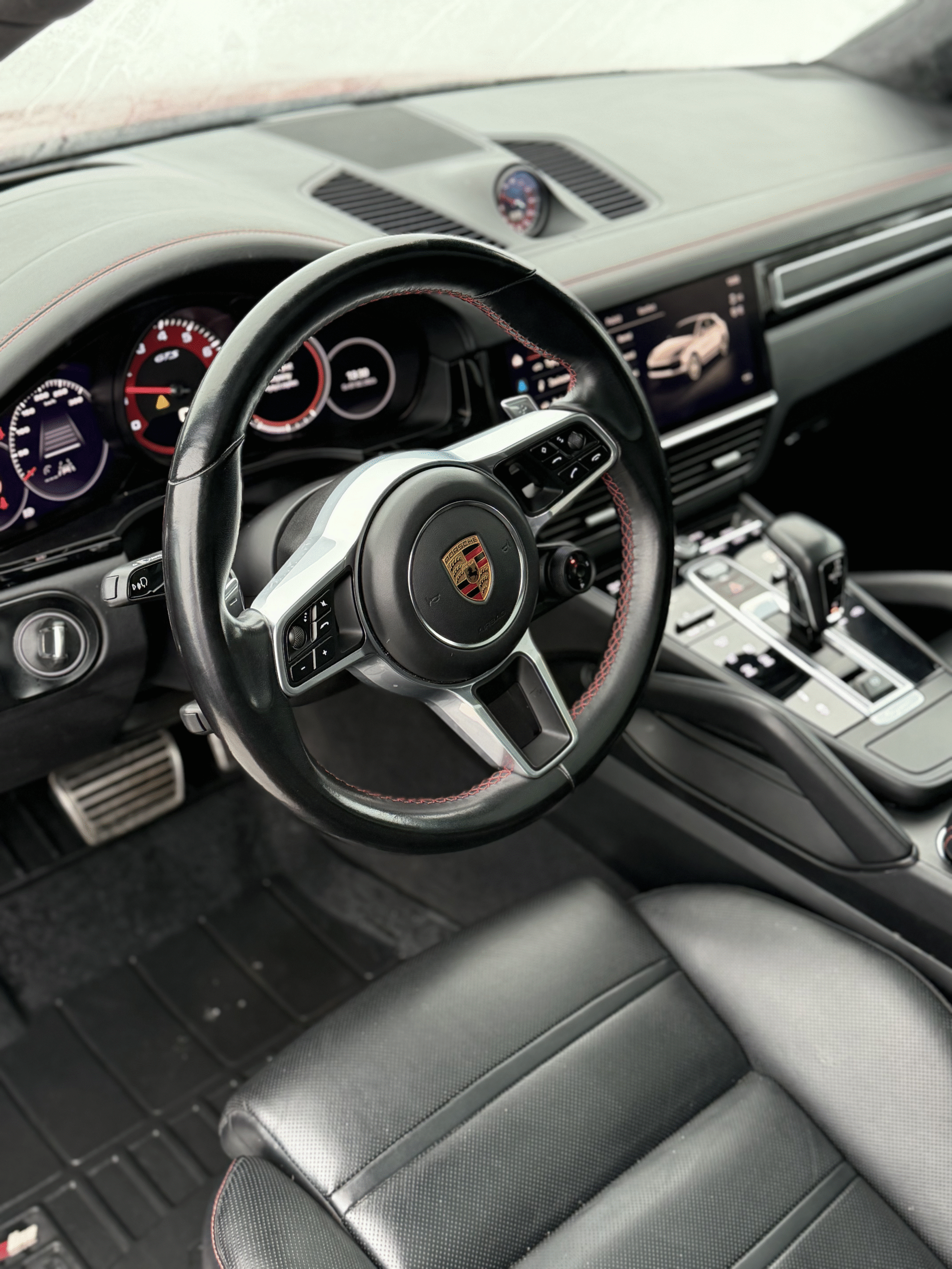Wnętrze Cayenne GTS Coupé jest luksusowe, przestronne i nowoczesne, z wyraźnym naciskiem na komfort i ergonomię kierowcy. Kabina oferuje wysokiej jakości materiały wykończeniowe, takie jak skóra, Alcantara i metaliczne akcenty, które podkreślają sportowy charakter auta. Fotele są komfortowe, z doskonałym trzymaniem bocznym, idealne zarówno na długie trasy, jak i dynamiczną jazdę.